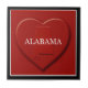 Eine grafische Abbildung eines Herzens und Alabama-Karte mit dem Text Alabama auf einer Kachel. Original-Kunstwerk: Copyright Charmaine Paulson