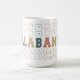 Das Wort Alabama in gedämpften Farben auf weißem Hintergrund.