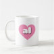 Diese Tasse besteht aus zwei rosafarbenen Herzen, die die fett-, weiß-, abgerundeten, Kleinbuchstaben al enthalten, eine spielerische Abkürzung für Alabama, den Yellowhammer-Staat. Ebbe!