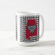 A herringbone background with the state of Alabama and an elephant. Crimson and gray colors on black and white herringbone.