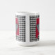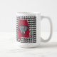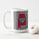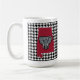 Ein Fischgrätmuster mit dem Bundesstaat Alabama und einem Elefanten. Kriminellrote und graue Farben auf schwarz-weißem Fischgrätmuster.
