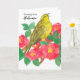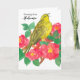 Eine "Grußkarte aus Alabama", die mit einem Grußhammer in einem Baum mit blühenden Kamelien-Blume, die mit Tinte gezeichnet und mit Aquarell bemalt sind, geschmückt ist. Inspiriert von der Staat Vogel und Staat Blume von Alabama. Sie können den Text nach Ihren Wünschen bearbeiten oder entfernen.