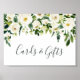 Dieses elegante botanische Schild, das auf unsere Hochzeitskollektion Alabaster Floral abgestimmt ist, lasse den Gästen zu wissen, wo sie ihre Karten und Geschenke ablegen können. Personalisieren Sie sich mit einer Textzeile in kalligrafischer Schriftzeichen (mit "Karten & Geschenke" gezeigt), gerahmt durch weiße Aquarellfarben-Blume und üppiges grünes Blattwerk.