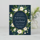 Unsere Alabaster Hochzeitseinladung umgibt Ihre Hochzeitstage-Details mit einem ovalen Rahmen aus bemaltem Aquarell, botanischem Blattwerk und Blume aus weißer Rose und Peony. Die goldene Folie rundet das Design für einen luxuriösen Look ab.
