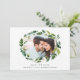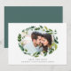 Elegante botanische Hochzeiten speichern die Dattelkarten mit einem beliebten Foto der Verlobung (horizontal oder landschaftlich orientiert) umgeben von einem ovalen Kranz mit üppigem grünem Blattwerk und weißen Blume. Personalisieren Sie mit Ihren Namen, Hochzeitsdatum und Position unten unter "Save the Date" in klassischer Schrift. Fügen Sie zusätzliche Informationen auf der Rückseite, einschließlich Ihrer Hochzeitswebsite und ein Hinweis darauf, dass eine formelle Einladung folgen wird.