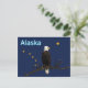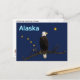 Ein Bald-Adler scannt den Himmel von seiner Terrasse auf einem Baumzweig, überlagert auf einer Fahne von Alaska. Der Text "Alaska" erscheint auch in blau-weiß.
