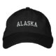 Eine einfache anpassbare Cap bestickt mit dem (anpassbaren) Text Alaska. Wählen Sie Hut und Textfarbe und Stil Ihrer Wahl aus.