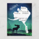 Die weitläufige Alaskan Frontier Wilderness Outdoor Szene mit Karte und Wortlaut zentriert über Kiefern mit Polargrün bis blau Hintergrund von Künstler Jason Girard. Wohnen Sie in Alaska oder kennen Sie jemanden, der dort gereist ist diese Postkarte ist für Sie.