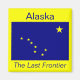 Ein echtes Bild der Fahne des Alaska-Set zwischen dem Namen des Staat und dem Spitznamen über einem hellen Flag-farbenen Hintergrund.