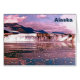 Digitale Darstellung eines Alaskan Gletschers beim Eintritt ins Meer. Auch "Alaska" erscheint als anpassbarer Text. Ein Gletscher ist jede Ansammlung von Eis, bei der die jährliche frische Ansammlung das Schmelzen überwiegt. Gletscher dauern in der Regel Jahrhunderte oder Jahrtausende. Auf der Erde befinden sich 99% des Gletschereises in riesigen Eisschichten in den Polarregionen, aber Gletscher finden sich in Bergketten aller Kontinente außer Australien und auf einigen ozeanischen Inseln mit hohen Breiten. In den Tropen kommen Gletscher nur auf hohen Bergen vor. Gletscher, wie sie hier dargestellt sind, die das Meer treffen, werden als Gewässer-Gletscher bezeichnet. Wenn das Eis das Meer erreicht, brechen die Stücke ab oder kälben sich und bilden Eisberge. Die meisten Gezeitengletscher kalben über dem Meeresspiegel, was oft zu einem enormen Spritzer führt, wenn der Eisberg ins Wasser trifft. Wenn das Wasser tief ist, können Gletscher unter Wasser tauchen, was dazu führt, dass der Eisberg plötzlich aus dem Wasser springen kann. Der Hubbard-Gletscher ist der längste Gewässer-Gletscher Alaskas und hat eine über 10 km lange Abbruchwand. Yakutat Bay und Glacier Bay sind wegen der riesigen Gletscher, die Hunderte von Metern ins Wasser hinunter führen, bei Kreuzfahrtschifffahrten sehr beliebt. Dieser Gletschertyp durchläuft jahrhundertelange Vorwärts- und Rückzugszyklen, die von den Klimaveränderungen, die derzeit den Rückzug der meisten anderen Gletscher verursachen, wesentlich weniger betroffen sind.