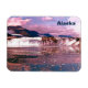 Digitale Darstellung eines Alaskan Gletschers beim Eintritt ins Meer. Auch "Alaska" erscheint als anpassbarer Text. Ein Gletscher ist jede Ansammlung von Eis, bei der die jährliche frische Ansammlung das Schmelzen überwiegt. Gletscher dauern in der Regel Jahrhunderte oder Jahrtausende. Auf der Erde befinden sich 99% des Gletschereises in riesigen Eisschichten in den Polarregionen, aber Gletscher finden sich in Bergketten aller Kontinente außer Australien und auf einigen ozeanischen Inseln mit hohen Breiten. In den Tropen kommen Gletscher nur auf hohen Bergen vor. Gletscher, wie sie hier dargestellt sind, die das Meer treffen, werden als Gewässer-Gletscher bezeichnet. Wenn das Eis das Meer erreicht, brechen die Stücke ab oder kälben sich und bilden Eisberge. Die meisten Gezeitengletscher kalben über dem Meeresspiegel, was oft zu einem enormen Spritzer führt, wenn der Eisberg ins Wasser trifft. Wenn das Wasser tief ist, können Gletscher unter Wasser tauchen, was dazu führt, dass der Eisberg plötzlich aus dem Wasser springen kann. Der Hubbard-Gletscher ist der längste Gewässer-Gletscher Alaskas und hat eine über 10 km lange Abbruchwand. Yakutat Bay und Glacier Bay sind wegen der riesigen Gletscher, die Hunderte von Metern ins Wasser hinunter führen, bei Kreuzfahrtschifffahrten sehr beliebt. Dieser Gletschertyp durchläuft jahrhundertelange Vorwärts- und Rückzugszyklen, die von den Klimaveränderungen, die derzeit den Rückzug der meisten anderen Gletscher verursachen, wesentlich weniger betroffen sind.