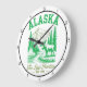 Show your Alaska state pride, with this charming wall clock. It features the Last Frontier heritage, showcasing a majestic moose mountain forest, design. An established 1959 gift, celebrating wilderness history. This Alaska wall clock, adds timeless rustic charm to any home. Perfect for any one.