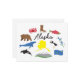 Mit einigen Ikonen von Alaska: Stiefel, Grizzlybären, Denali, Sockeye Lachs, Orcas, Buckelwale, Alaskan Königskrebse, Puffins, vergessene-me-nots und die Alaska-Staatsflagge.