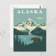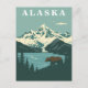 Embark on a journey to the last frontier with this stunning Retro Alaska travel postcard! This unique design captures the majestic beauty of Alaska, USA, through a distinctive mid-century modern lens. Featuring iconic snow-capped mountains, expansive glaciers, and a powerful grizzly bear