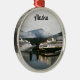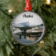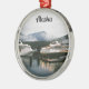 Schönes Bild von Kreuzfahrtschiffen in Alaska angedockt, mit Nebel aus den Bergen im Hintergrund. Wort: "Alaska" ist auf Design. Wunderschönes Andenken an einen besonderen Urlaub in Alaskan!