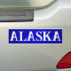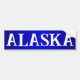 Alaska Autoaufkleber in Blau und Weiß. Passen Sie den Stil des Schriftartes an. Erstellen Sie Ihr eigenes Souvenir. Der Hintergrund weist einen mittleren bis dunkelblauen Farbverlauf auf.