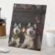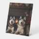 Alaskan Malamute am Feuerplatz Weihnachten Sockelschild