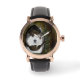 Uhr, Klassische Damenuhr mit schwarzen Lederarmband