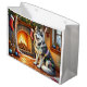 Alaskan Malamute Fireplace with Christmas Lights Große Geschenktüte