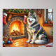 Alaskan Malamute Fireplace with Christmas Lights Poster