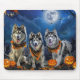 Entfesseln Sie den unheimlichen Geist mit diesem unheimlichen Halloween-Design, das eine Hundepackung unter einem dunklen, mondbeleuchteten Himmel bietet, umgeben von fliegenden Fledermäusen und glühenden Kürbissen. Ideal für diejenigen, die mit ihren wütenden Freunden eine Touch voller Furcht Liebe haben!