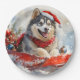 Alaskan Malamute in Sledge Let it Schnee Weihnacht Pappteller