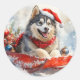 Alaskan Malamute in Sledge Let it Schnee Weihnacht Runder Aufkleber