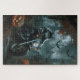 Alaskan Malamute Riding Motorrad Halloween Beängst Puzzle