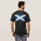 Der beschriebene T - Shirt trägt auf der Vorderseite den Namen "Alba" (schottisch-gälischer Name für Schottland), während auf der Rückseite des Shirts die schottische Flagge zu sehen ist. Die Schottische Flagge, auch bekannt als Salreifen oder St. Andrew's Cross, ist ein blaues X-förmiges Kreuz auf weißem Hintergrund. Dieses Design dürfte Stolz oder Unterstützung für das schottische oder schottische Erbe darstellen.