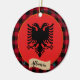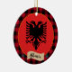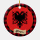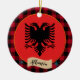 Ornamente: Rustikales Albanien dekorative Ornament mit albanischer Fahne umgeben von roten und schwarzen Büffel karierte Muster - Liebe mein Land, Weihnachtsdekoration, nationale Patrioten / Sportfans.