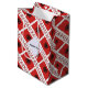 Diagonal gekachelt Design mit der albanischen Flagge mit dem Wort, ALBANIA, darunter. Ein Raum mit weißen, quadratischen Plätzen ist ein Ort für Ihren Namen. Fügen Sie sie für einen personalisierten Look hinzu oder erstellen Sie eine maßgeschneiderte, mittelgroße Geschenktasche.
