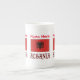 Die Tasse der Knochen-China zeigt die albanische Flagge mit dem unten stehenden Wort ALBANIA in den rot-schwarzen Fahnen. Fügen Sie Ihren Namen in roten Buchstaben in den Raum für ein persönliches Aussehen. Oder erstellen Sie ein individuelles Geschenk, indem Sie den Namen eines anderen hinzufügen. Spaß bei der Benutzung auf einer Wiedersehen, in einer Reisegruppe oder im Klub. Teilen Sie Ihr Erbe und Ihre Herkunft.