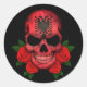 Albanischer Flaggenschädel mit Rote Rosen Runder Aufkleber