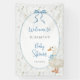 Herzlich willkommen bei Ihren Gästen! Dieses Vintag inspiriert Babyduschenwillingsschild besticht durch eine süße Gans in einem blauen Bogen, umgeben von sanften, zarten Blumen. Mit seinem Storybook-Gefühl und dem antiken Design ist es der perfekte Einstieg für ein Baby-Fest, das sowohl spielerisch als auch elegant ist.