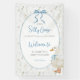 Herzlich willkommen bei Ihren Gästen! Dieses Vintag inspiriert Babyduschenwillingsschild besticht durch eine süße Gans in einem blauen Bogen, umgeben von sanften, zarten Blumen. Mit seinem Storybook-Gefühl und dem antiken Design ist es der perfekte Einstieg für ein Baby-Fest, das sowohl spielerisch als auch elegant ist.