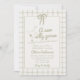 Wenn Sie nach einer eleganten, einzigartigen und einfach anpassbaren, geschlechtsneutralen Babydusche suchen, ist dies für Sie perfekt. Wie Sie sehen, ist es mit einem Retro-handgeschriebenen Drehbuch der Om kleine alberne Gans im Lose in Grün. Und handgezeichnete Gans und ein Band. Und grüner Rahmen und grüne karierte Quadrate. Alles grün und cremefarben. Sehr einfach zu anpassen und zu bedienen. So packen Sie es und männlich Ihre Einladungen sehr verlobt.