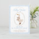 Niedlicher, blauer Gingham Geburtstagseinladung mit einer Gans in Stiefeln.