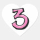 Alberne Nummer 3, rosa, weiße Herzklammer Herz-Aufkleber