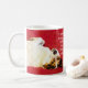 Alberner Hund auf rotem Hintergrund Kaffeetasse