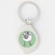 Ein lustiger Silver-Effect-Schlüsselanhänger, bei dem ein Comic eine kräftig rote Blume im Mund hält, aus einer handgezeichnet Abbildung von Judy Adamson. Sie können den grünen Hintergrund ändern, wenn Sie möchten.