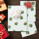 Dieses Set der Packpapierblätter zeigt ein albernes Skelett mit einem roten Weihnachtsmann, das in einem hellen, roten und grünen Spritzer auf einem weißen Hintergrund mit grünen Polka-Punkten Schmuckstücke aufhält.