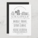 Eine einzigartige Hochzeitseinladung für eine Hochzeit in der schönen Stadt Albuquerque, New Mexico. Diese Einladung enthält eine stilisierte Abbildung der einzigartigen Skyline der Stadt mit ihrem Namen darunter. Anschließend erhalten Sie Informationen zu Ihrem Hochzeitstag in einem passenden, offenen Stil. Auf der Rückseite der Einladung ist eine tiefe graue Farbe, um das Aussehen und das Gefühl zu ergänzen. Alle Einzelelemente der Einladungskarte sind entriegelt. Sie können also jederzeit mit der Anpassungsfunktion alle notwendigen Details ändern oder hinzufügen. Sie können der Rückseite ein Foto hinzufügen und einen Schwarz-Weiß-Filter hinzufügen. Außerdem können Sie mit den vielen einzigartigen dickeren Papiersorten und Schnitten experimentieren. Passende RSVP-Karten, Adressetiketten, Aufkleber, Totbeutel und vieles mehr sind erhältlich. Viel Spaß beim kreativen sein und es zu Ihrem eigenen machen!