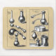 Beakers und Retorten zur Destillation in einem Alchimielabor zur Gewinnung von Gold aus Blei. Oben befindet sich die Alembbe mit langen "Schnallen" und kleinen Empfängerflaschen, die Koncha oder Muschel zur Verdunstung, Glasmörtel und Pestle, unter anderem. ⚗ "Verfügbar auf mehr Produkten" mit dem Link.