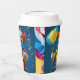 La imagen muestra un payaso de dibujos animados con una apariencia muy colorida y alegre de frente.