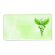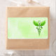 © sonnige Mars entwirft - hellgrüne Caduceus-Alternativmedizin-klebende Verschiffen-Aufkleber - holistische Gesundheitsaufkleber mit geändertem Caduceussymbol mit Blätter und Reben anstelle der Flügel und der Schlangen, gegen einen hellgrünen Hintergrund. Personifizieren Sie ihn, indem Sie Ihren eigenen Handelsnamen oder anderen Text addieren. Konzept für Alternativmedizin oder ein kombinierter Gebrauch von Alternativmedizin und herkömmlicher medizinischer Praxis.