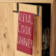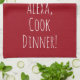 Alexa elektronische Gerät Befehl zum Kochen des Abendessens auf rotem Hintergrund.