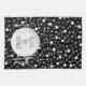 Alexa elektronische Vorrichtung Befehl zum Waschen von Geschirr auf weißer Tafel. Schwarz-Weiß-Mini-Blumenhintergrund.