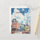 Eine wunderschön illustrierte Postkarte, die den Charme von Alexandria, Virginias historischem Ufer, einnimmt. Die Szene umfasst elegante Gebäude aus Ziegelsteinen im Kolonialstil, einen weißen Uhrturm und farbenfrohe Stadthäuser am Hafen. Boote schweben sanft auf dem Wasser und fügen eine Touch von Küstenstöcken hinzu. Oben schweben die Möwen an einem hellblauen Himmel mit flauligen weißen Wolken. Während eine amerikanische Flagge stolz auf eines der Gebäude weht, ist diese malerische Szene, die von Menschen, Blume und Grünpflanzen übersät ist, perfekt für die Schönheit und die reiche Geschichte dieser beliebten Stadt am Ufer.