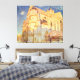 Alfred Sisley. Kirche Moret. Eine große schöne gotische Kathedrale in den Strahlen der untergehenden Sonne. Blauer Himmel mit hellen Wolken. Reproduktion berühmter Kunstbilder im öffentlichen Bereich.