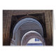 Das ist ein weiteres originelles Foto aus dem Roten Palast. Die maurische Architektur ist ausgeglichen. Hier führen drei gewölbte Türe zur weltlichen Außenwelt. Der arabische Text wird im gesamten Palast zehntausende Male wiederholt.